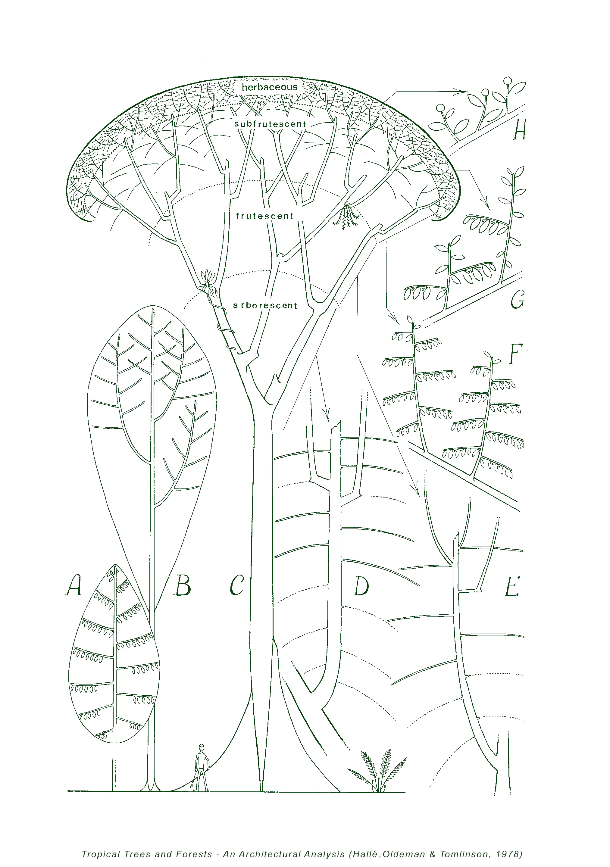 Fig. 74A-H. (p. 277) Tropical Trees and Forests - An Architectural Analysis (Hallé, Oldeman & Tomlinson, 1978)