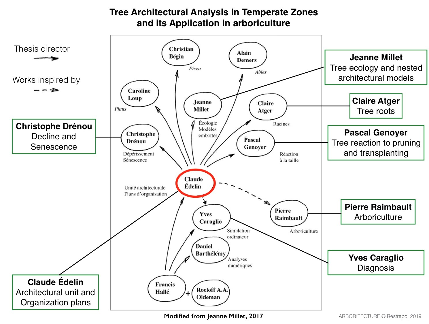 Main researchers in the application of tree architecture in arboriculture